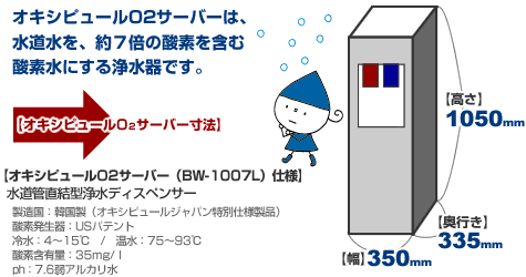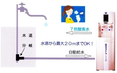 【仕 様】 【設置イメージ】 ◇◆取り付けは簡単!◆◇ 水道の蛇口の根元に付属の分岐栓を取付け、O2サーバーと専用パイプで接続します。 ※お客様の水道形式により、別途分岐用アダプターの取付けや設備工事が必要になる場合があります。 【メンテナンスについて】 お客様には、年に1回フィルターを交換して頂きます。O2サーバー内にフィルターは4本入っています。 ■お買い上げ ・1年後にフィルター 1・2の2本を交換 (毎年) ※フィルターは1本¥3,150円(税込) ![]() ![]() |
